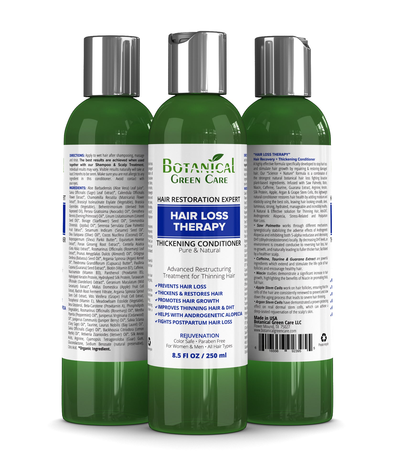 BOTANICAL GREEN CARE HAIR GROWTH REJUVENATION LINE CONDITIONERS effectively prevent premature hair loss and stimulate new hair growth, moisturizing and nourishing the scalp, adding fullness, and making your hair more voluminous looking, healthier and shinier.